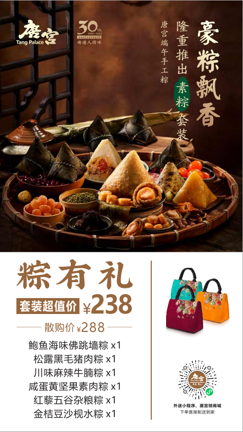 农/历/五/月/初/五 食 粽 端 午 由北京市商务局主办 北京市餐饮行业协会承办 2022北京消费季-品质生活节已经全面开启 本次活动得到中国建设银行北京市分行 北京华天饮食控股集团的大力支持 端午将至 素有食粽之习俗 首都餐饮顺应“暂停堂食”防控措施 外卖预定、外带打包等多种方式 服务市民节日期间餐饮需求 DUANWU 华天 手工礼粽 98元/盒 (礼盒装) 每款礼盒内含4袋.每袋含4只粽子 甄选江南糯米为主料 搭配多种食材 每一口,都是源自大自然的稻香味道 非遗大师多次优化的包粽手艺 每一颗,都是手工包制 用心传承舌尖手艺 精选4款传统口味甜粽 每一款,都还原老北京记忆中的粽香 订购方式:致电17310387531 DUANWU 大董 董粽·礼享集 298元/盒 南粽北粽海鸭蛋一盒配齐 大董烤鸭粽 130g×2粒 蛋黄鲜肉粽 130g×2粒 陈皮豆沙粽 130g×2粒 乌米蜜枣粽 130g×2粒 大董海鸭蛋 60g×5粒 赠:大董甜品刀叉 *1副 欢迎联系:13366738691(微信同号) 端午食足,有里有面 个人小团购、企业集采有优惠 DUANWU 唐宫 粽有礼 散购价288元 套装超值价238元 提货联系电话: 郭明琴13683077340 DUANWU 西贝 西贝杂粮粽 98元/盒 黄米凉糕粽2个 蒙古奶酪燕麦粽2个 老西安甑糕红枣粽2个 微信小程序(西贝莜面村) 订购电话:400-8207320转4 团购电话18519117287 三款经典口味、源自西贝传承 谷物原香、粽叶清香 真材实料、口口安心 DUANWU 金鼎轩 粽香情礼盒 零售价:129元/盒 团购价:89元/盒 八宝香糯粽 100克 2粒、豆沙粽 100克 2粒 购优惠价联系:13811526407 端午节 送礼首选 精选当季新鲜糯米 甜蜜红枣精选新疆红枣 鲜香大黄米 软糯黏密不粘牙、老少皆宜 DUANWU ▻▻▻ 关注我们